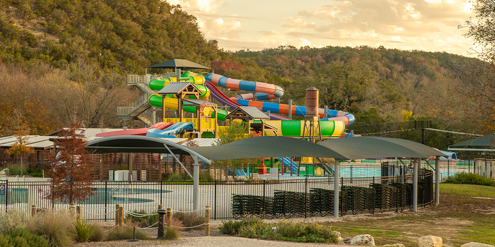 Camp Fimfo Texas Hill Country offers a wide range of accommodations, including custom-designed cabins, full hook-up RV sites, and tent camping options. Guests can enjoy an expansive suite of resort-style amenities such as a water park, pools, swim-up bars, scheduled family activities, mini-golf, on-site dining, and more, all designed to make outdoor stays effortless, comfortable, and memorable.